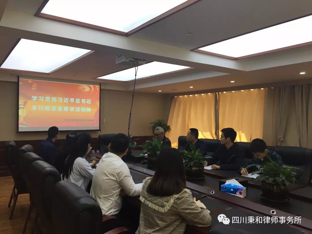 并且大家通过讨论发言后,充分认识到:贯彻落实习近平来川视察重要讲话精神的首要任务就是要深入落实习总书记“坚定推进依法治理”的重要要求。尤其是律师,作为社会主义法律工作者,推进依法治国依法治川的重要力量,更应当认真学习贯彻党的十九届二中、三中全会精神,深刻领会宪法修改的重大意义,真正在学懂弄通做实上下功夫,坚持以习近平新时代中国特色社会主义思想为指导,推动党的十九大决策部署在巴蜀大地落地生根。